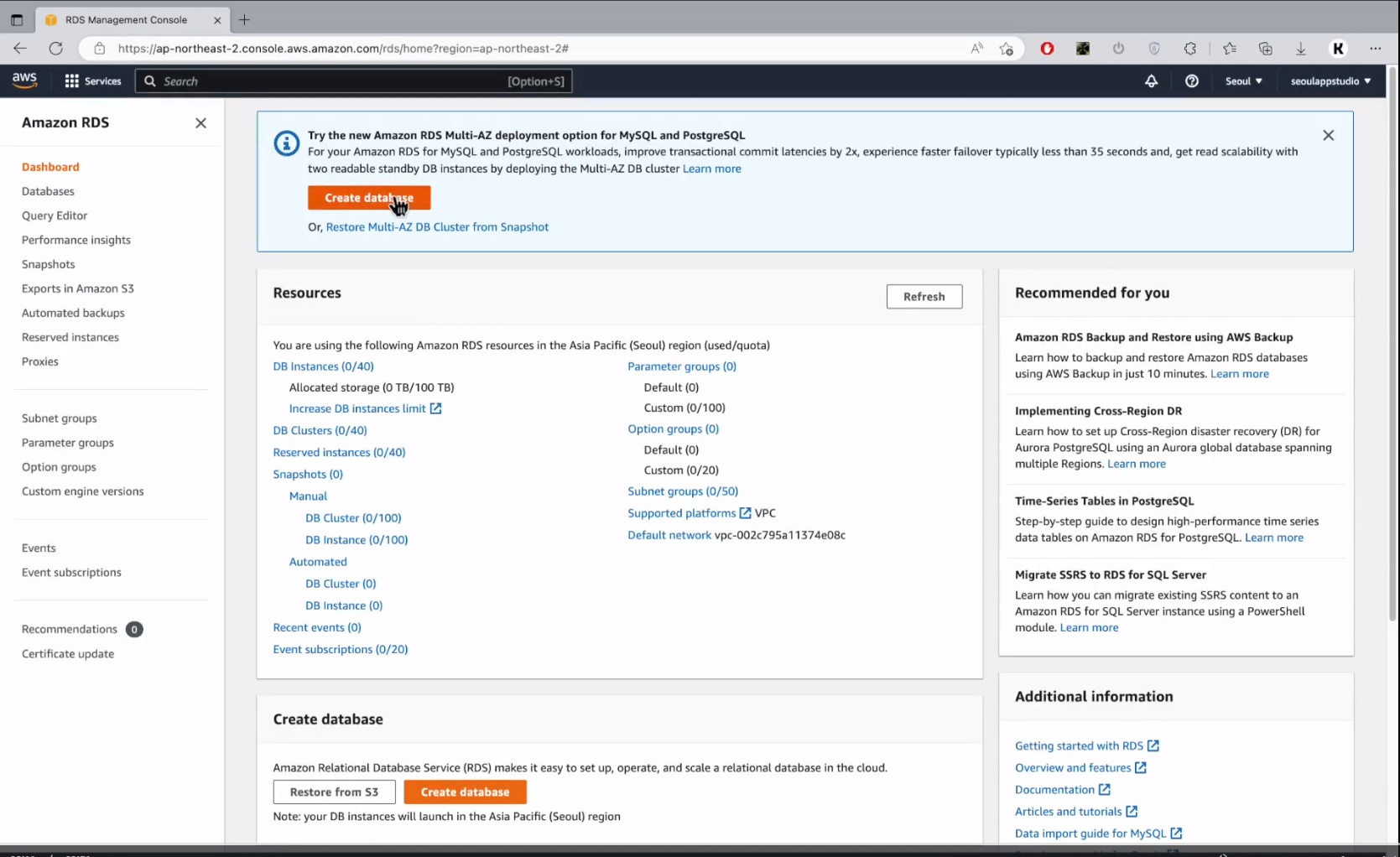 RDS 생성하는법